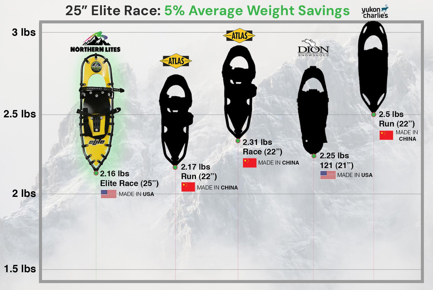 Not all races are held on packed and groomed trails. When conditions are softer and deeper, you need more flotation to keep you on top. It also doubles as our lightest 25" unisex trail snowshoe. The Elite Race does just that while barely sacrificing more weight.