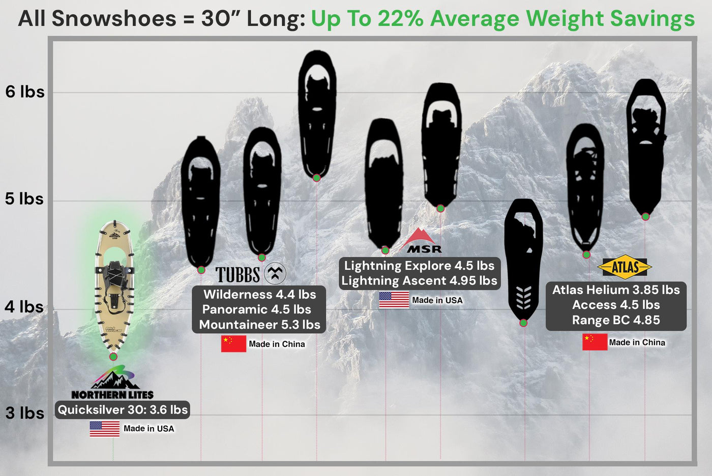 Average weight savings of 20% for incredible ultralight snowshoeing.