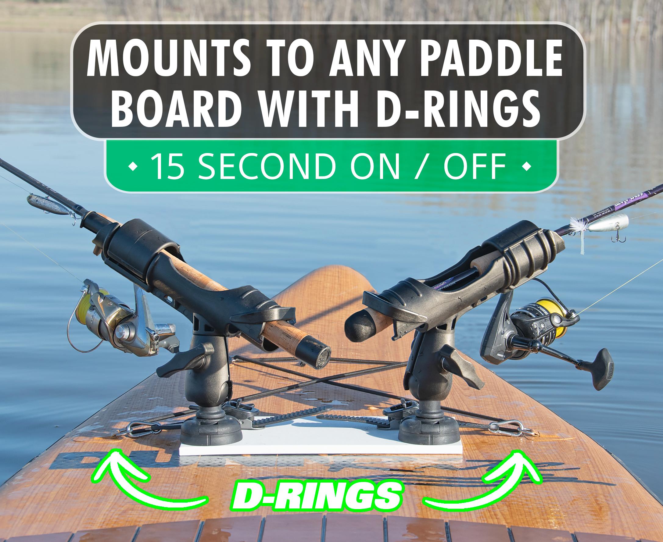 This universal mount fits every paddle board with D-rings spaced 14" to 24" apart (virtually all of them) and installs in just 15 seconds with our rock-solid ratchet strap system.