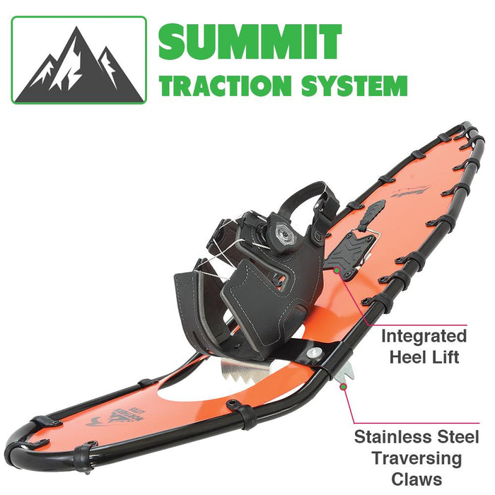 Choose the Summit traction system for more bite and an integrated heel lift for steep ascents.