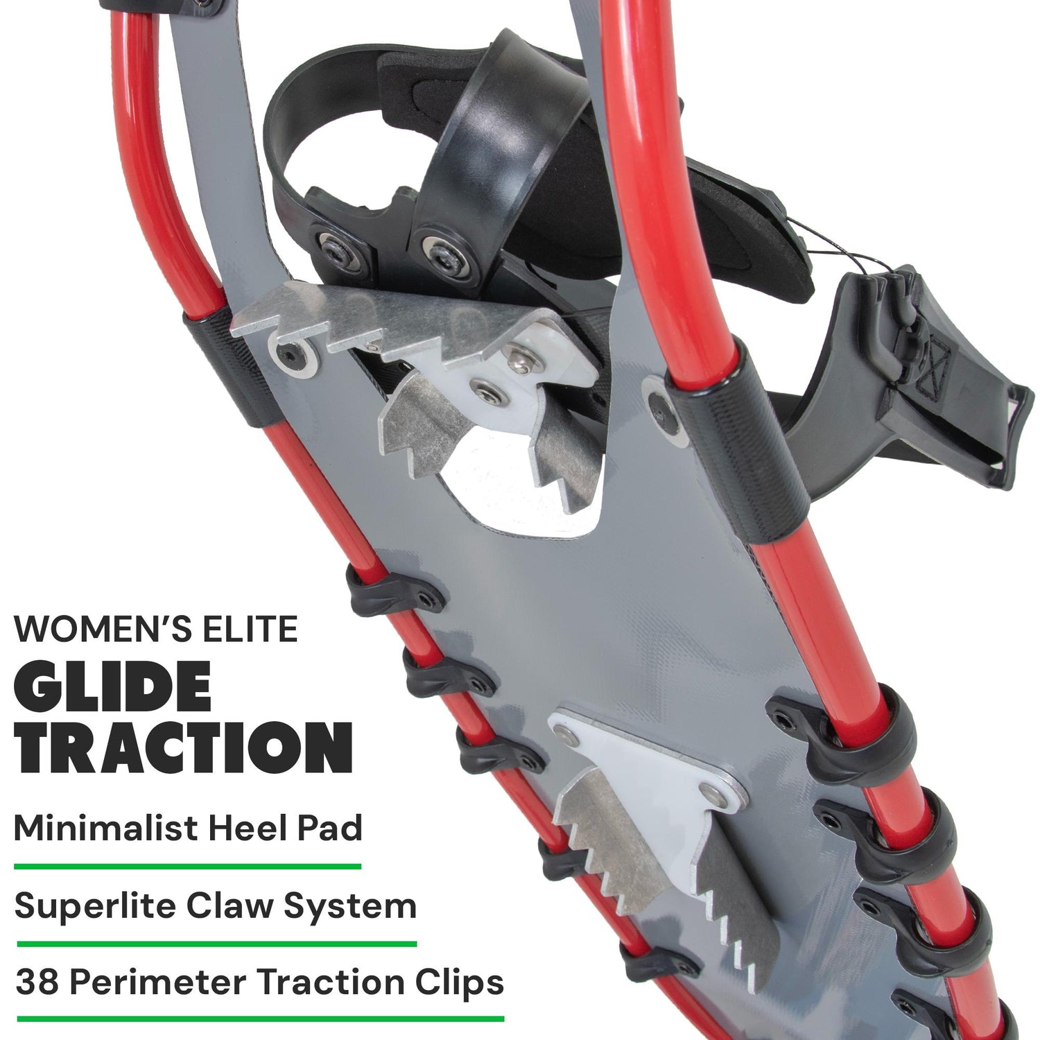 Starting at just over 2.45 lbs. per PAIR, the Women's Elite is around half the weight of other 25" all-terrain snowshoes.